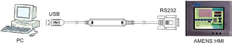 interface RS-232, D-SUB 9 male plug compatible with AMENS H.M.I com1 |