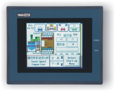 | 本產品為工業級人機介面,針對使用於各類型精密機器設備之控制操作面板,例如紡織機、印刷機、射出機、塗佈機、包裝機、工具機、飛剪控制、送料機、充填機械、半導體設備、定長裁切機、生產線組立設備、電子組立SMT設備、NC雕刻機、機械手臂、視覺檢測..等等之設備控制,其連線為各種PLC控制器、變頻器、NC、溫控器、各式檢測設備…等,也可做為現場生產設備線上終端操作器、物流撿貨設備監視面板、生產設備整廠監視、大樓機房空調電力控制及監視等;基本配備有RS232/422/485的串列通訊設備,LCD顯示面板為5.7"規格,Touch Panel,列印埠,使用高速 RISC CPU,作業系統可由客戶自行規畫,配合Windows規劃AP軟體的應用,提供給客戶多功能、可擴充及最可靠的工業級人機介面,也能與上層系統整合軟體作進一步的結合。 |
