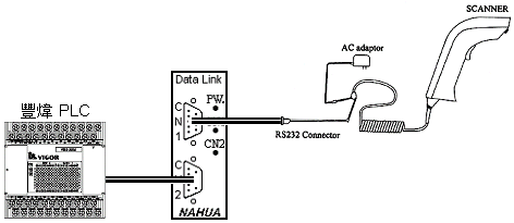 | 範例六: | 豐煒 PLC (M,VB系列),透過資料連結交換器與條碼機連線,不需要撰寫任何通訊程式,竟而達到讀取條碼機內容值。 |